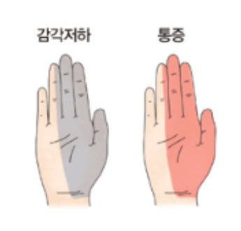 - 손끝이 따끔따끔한 느낌과 함께 통증 발생