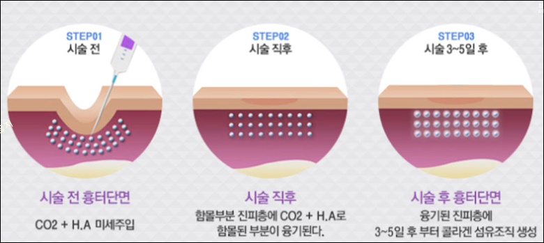 자가진피재생술은 아주 작은 주사 바늘만으로 시술하여 통증이 크지 않으며 회복시간이 이틀 정도로 빠른 것이 장점입니다.