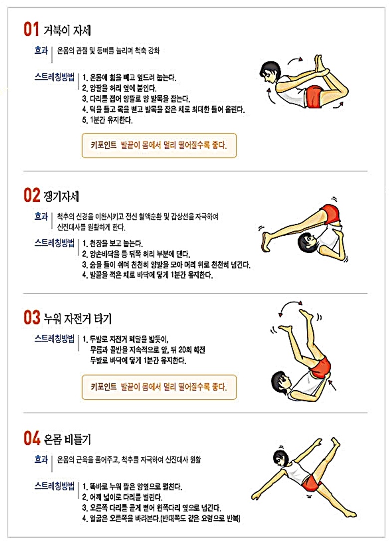 ※ 운동은 매일 30~1시간 정도 규칙적으로 하는 것이 좋습니다. 운동 강도는 등에 땀에 촉촉해질 정도면 충분합니다.