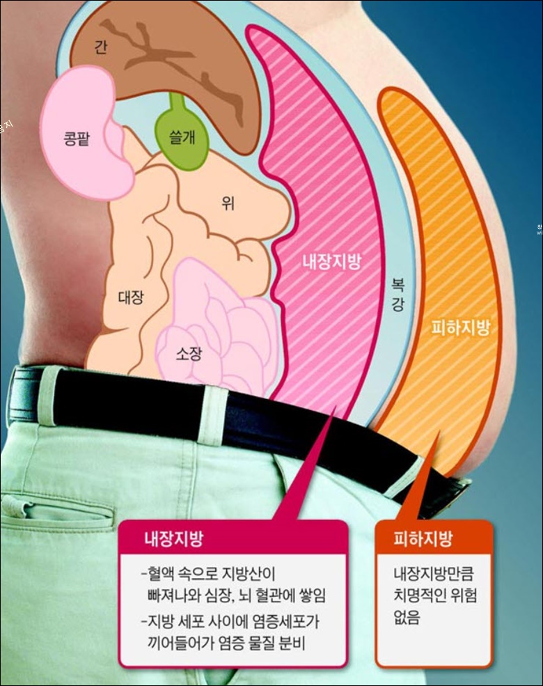 두 지방 중에서 우리 몸에 위험한 지방은 내장지방입니다.