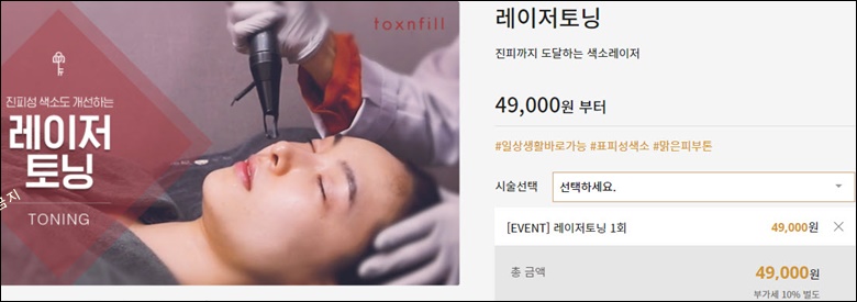 피부과에서는 레이저토닝과 관련하여 이벤트를 많이 진행하기 때문에 이를 공략하는 것도 방법입니다.