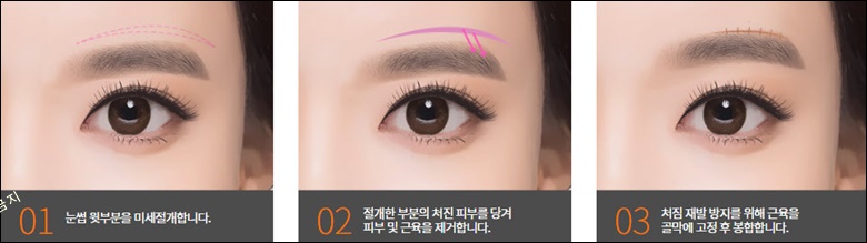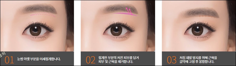 눈과 눈썹 사이에 따라 수술 방식에 차이가 있습니다.