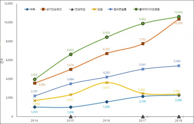현대사회에서 성과 관련된 질환은 모든 연령에 걸쳐 매년 꾸준히 증가하고 있다고 합니다. 연령별로는 20~30대와 60대에서 발병률이 가장 높게 나오고 있습니다.