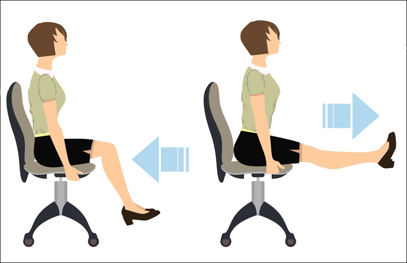 먼저 의자에 등을 바르게 펴고 양손은 의자 옆 쪽을 잡아주고 다리를 천천히 올렸다가 내려줍니다.